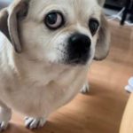 The moment lunchtime arrived, Miki, the Pug, sensed something was off, and his entire demeanor shifted in an instant. His big, round eyes locked onto the object in front of him, filled with confusion, suspicion, and just a hint of betrayal. This was not the usual easy meal he looked